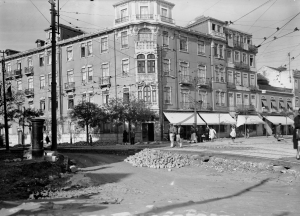 Cruzamento entre a Rua Saraiva de Carvalho e a Rua Ferreira Borges, em 1941. António Passaporte (Arquivo Municipal de Lisboa).
